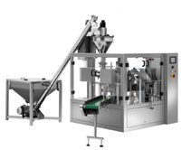 旋轉(zhuǎn)式給袋式自動(dòng)包裝機(jī)適用于平面袋,自立袋,拉鏈袋等各種形狀的熱封的復(fù)合袋.