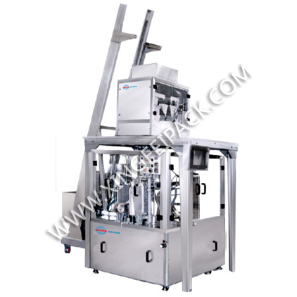 一.給袋式自動包裝機(jī)和六組電子自動計量機(jī)配套組成。適用于雞精,味精,砂糖,茶葉等各種顆粒產(chǎn)品。