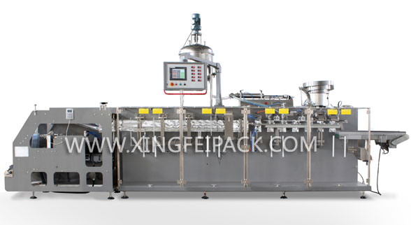 全自動(dòng)水平式包裝機(jī)是一款水平式全自動(dòng)卷膜成型袋包裝機(jī),是集制袋、計(jì)量、灌裝、封口于一體的全新自動(dòng)包裝機(jī)。以熱封性復(fù)合膜材料為外包裝,配置各種不同的灌裝頭,可對(duì)粉狀、顆粒、液體、粘稠體等不同的物料進(jìn)行三邊封或四邊封包裝。