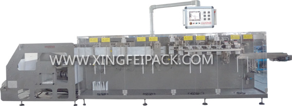 全自動水平式包裝機是一款水平式全自動卷膜成型袋包裝機,是集制袋、計量、灌裝、封口于一體的全新自動包裝機。以熱封性復合膜材料為外包裝,配置各種不同的灌裝頭,可對粉狀、顆粒、液體、粘稠體等不同的物料進行三邊封或四邊封包裝。